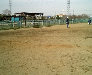 写真右:調布市総合体育館隣のドッグラン。柴ワンコ2匹と遊んでもらいました。