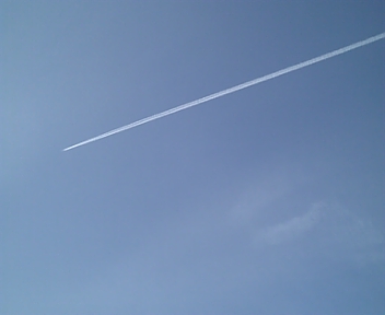 晴れ渡って綺麗な青空に一筋の飛行機雲が真っ直ぐに線を描いていました。