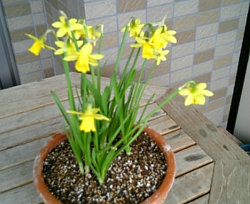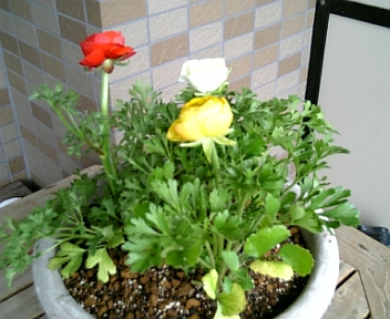 ラナンキュラス3株を寄植え、水仙は4球くらい入っていたと思います。他に雲間草と合計3種類。昨日の予報ほど寒さは感じず1時間ほどで作業終了。長持ちしてくれると良いですけどねぇ。